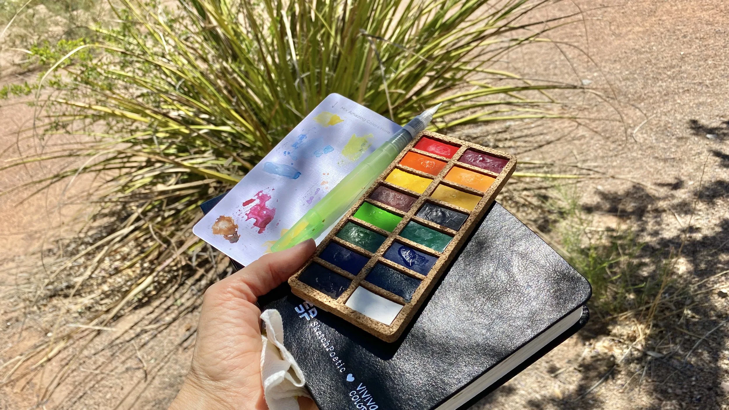 At the time it came out way better than I expected, and so I've been continuing my own DIY photo shoots ever since. I did some research at the beginning, and I'm sure glad I did. It made the process so much smoother. The images in this post are from my latest DIY photo shoot at a nearby desert garden. Because the desert is my main source of inspiration, it was a perfect setting for me to set the mood for my brand. You might notice I'm wearing my brand colors as well. All of these details help tell the story of my creative business.