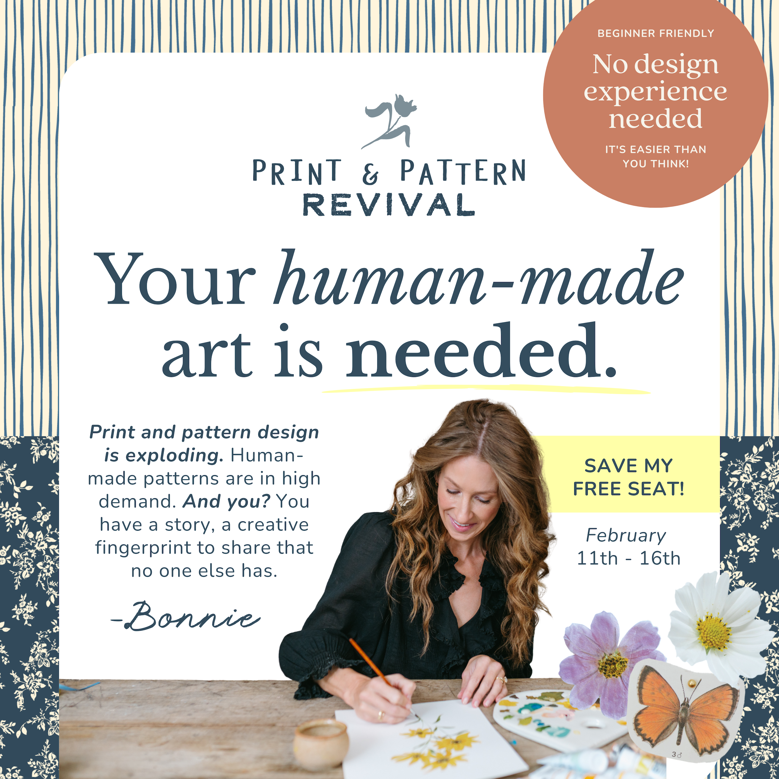 I have learned so much more from Bonnie than just surface pattern design, which was already a lot. I have learned how to grow my own self-confidence, and find the courage to do the big scary things that really made the difference in my creative career.