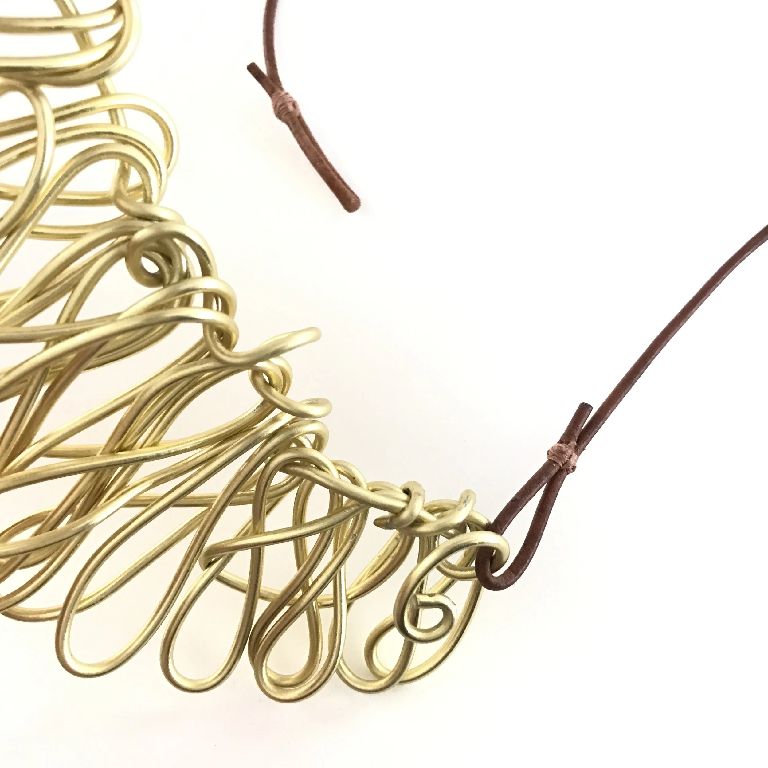 Inspired by the movement of electricity, the Electricity Pendant Necklace is a crowd favorite. It is size adjustable by tying the leather cord in the back so it matches any neckline in your wardrobe. The aluminum wire pendant is ultra light-weight making this piece wearable day to night. Customize the look by removing the hand stitched leather cord and changing it with one of the other color options. More colors available! Contact me for custom pieces.