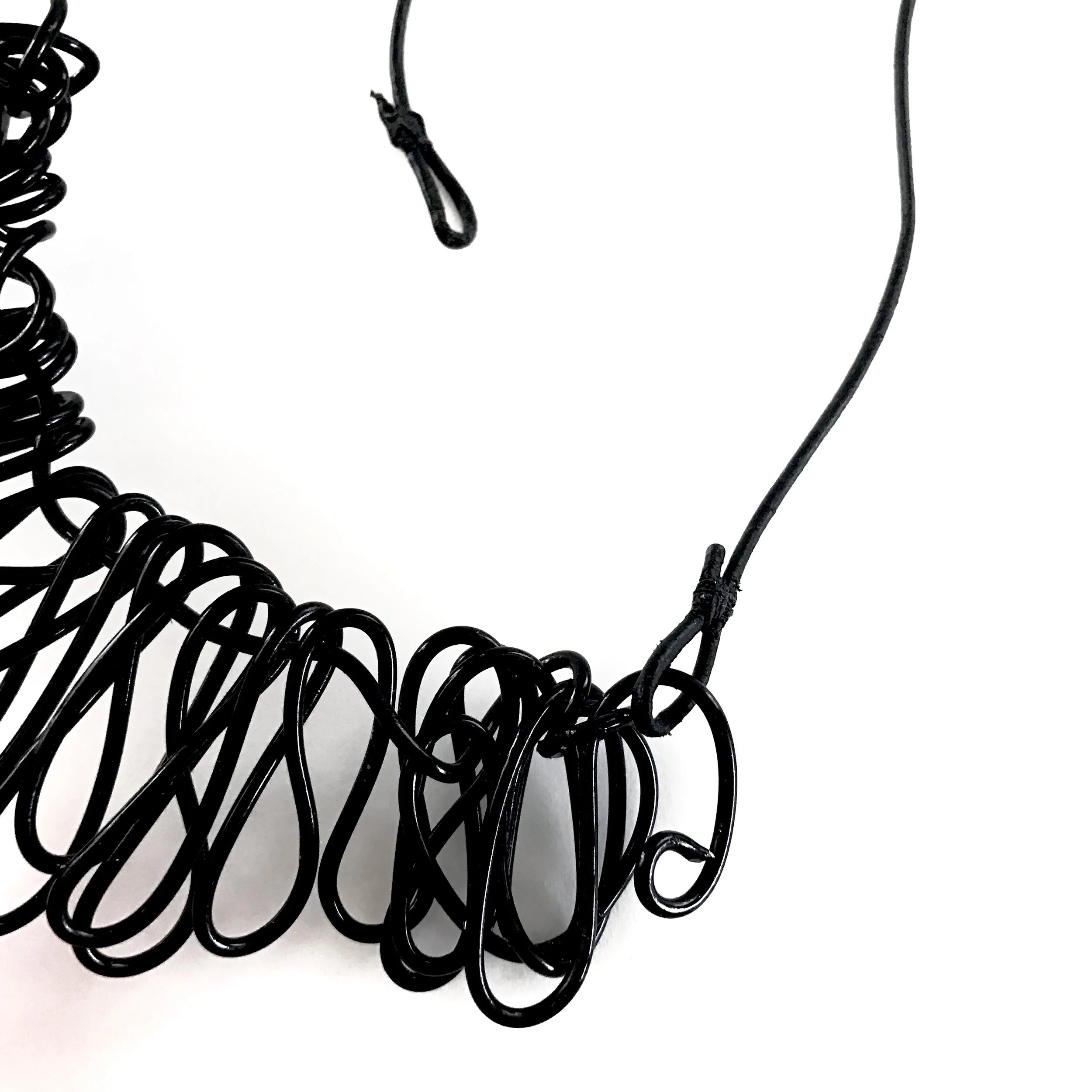 Inspired by the movement of electricity, the Electricity Pendant Necklace is a crowd favorite. It is size adjustable by tying the leather cord in the back so it matches any neckline in your wardrobe. The aluminum wire pendant is ultra light-weight making this piece wearable day to night. Customize the look by removing the leather cord and changing it with one of the other color options. More colors available! Contact me for custom pieces.